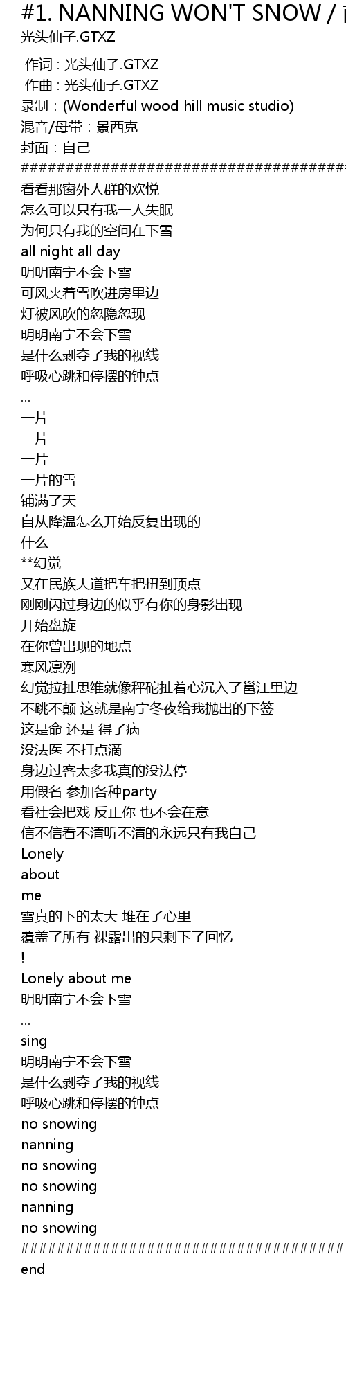 | Song | #1. NANNING WON'T SNOW / 南宁不会下雪 # |