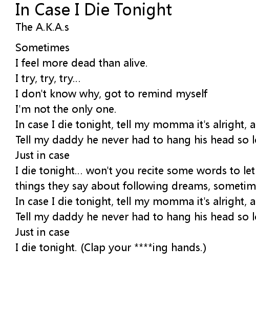 | I die tonight won' t you recite some words to let them know despite those things they say about following dreams, sometimes it' s not as easy as it seems. | |