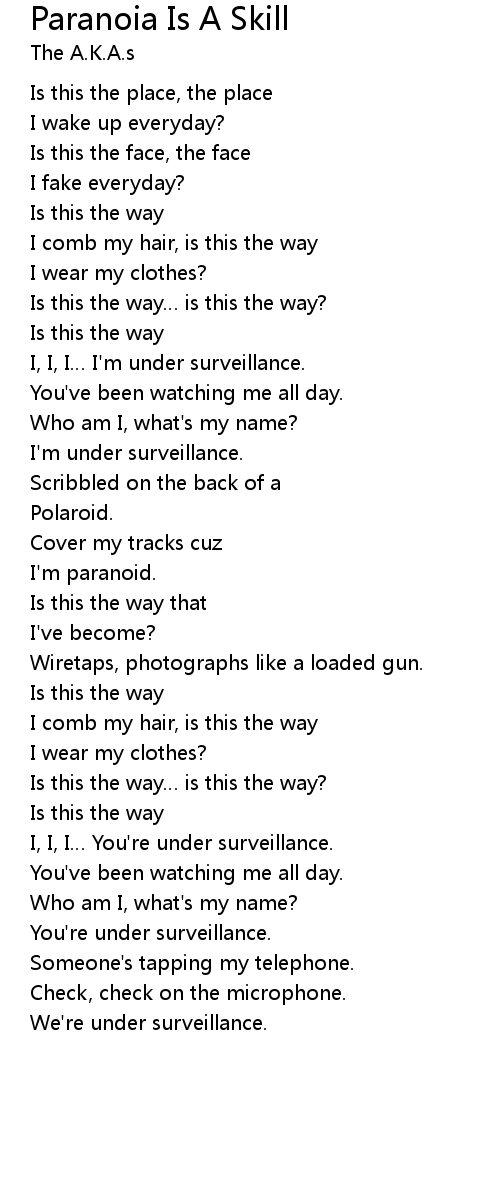 | Song | Paranoia Is A Skill |