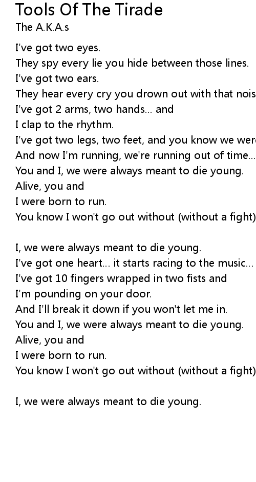 | I' ve got two legs, two feet, and you know we were born to run. | |