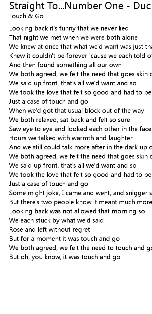Straight To...Number One - Duck's Radio Mix Lyrics