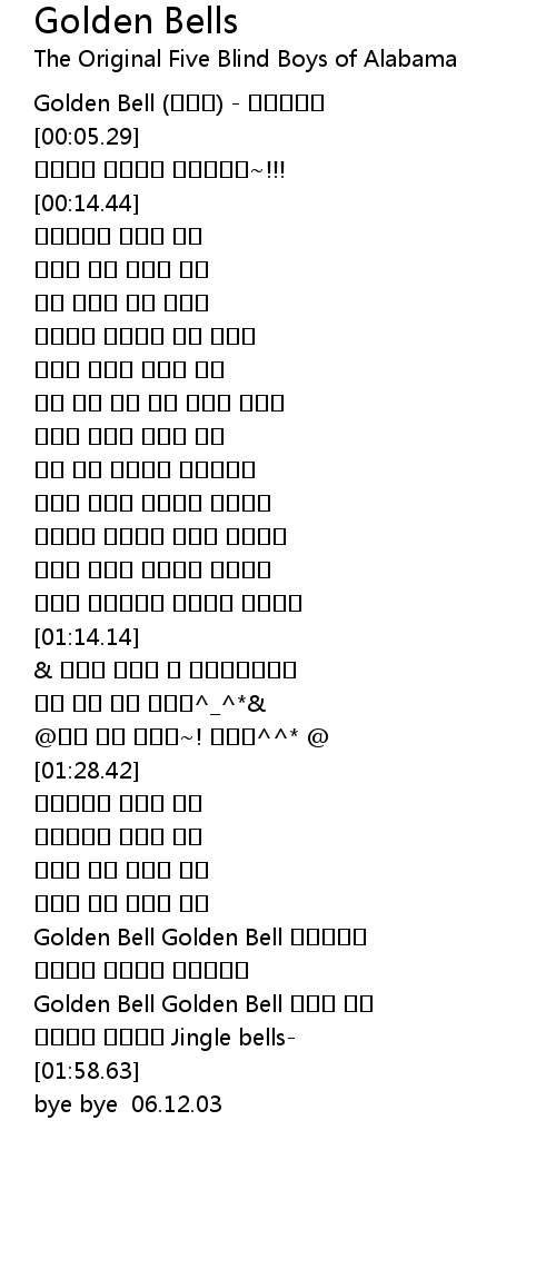 | [01:43.55] | Golden Bell Golden Bell 누가울려서 |