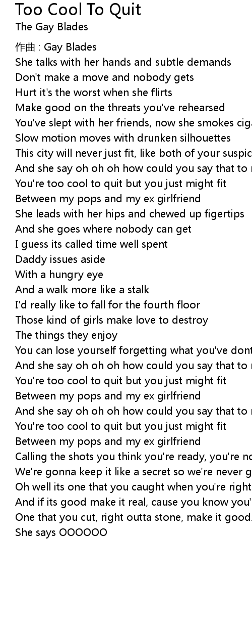 | You' ve slept with her friends, now she smokes cigarettes | |