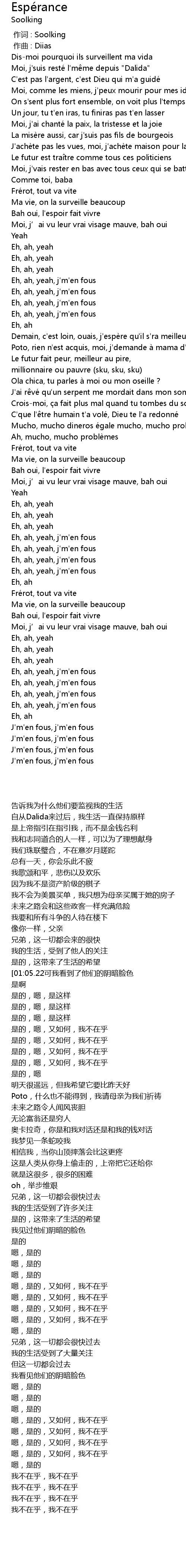 | [00:19.40] | Moi, j' suis reste l' m me depuis " Dalida" |