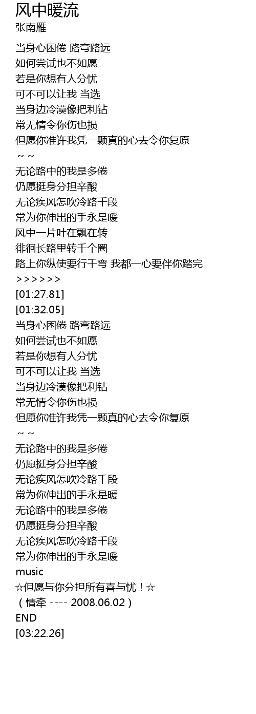 | [03:14.18] | (情牵 ---- 2008.06.02) |