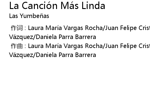| [00:00.00-1] | 作词 : Laura María Vargas Rocha/Juan Felipe Cristancho Vázquez/Daniela Parra Barrera |