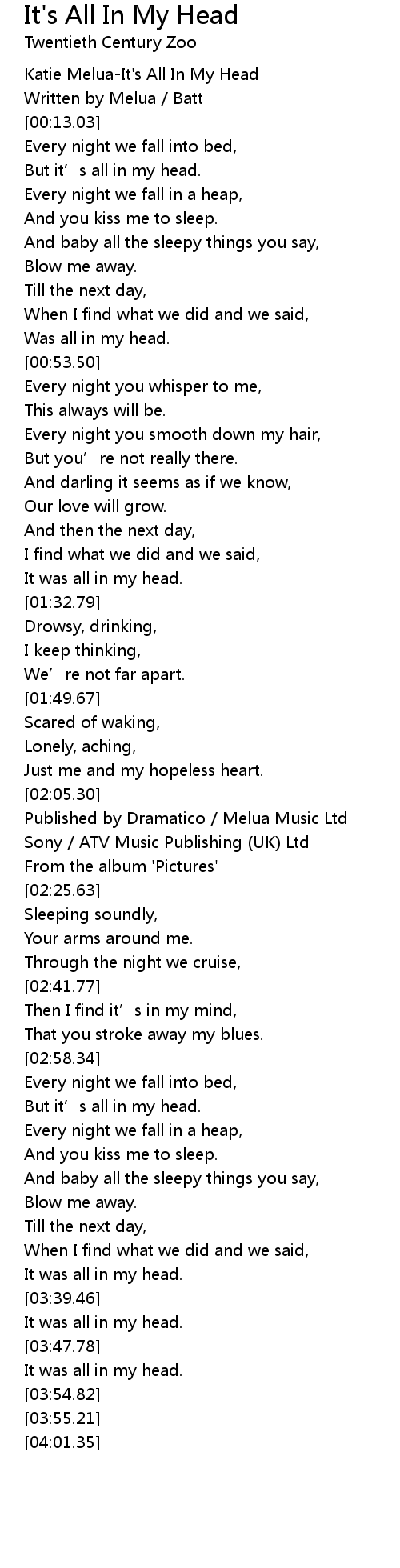 | [00:01.62] | Katie MeluaIt' s All In My Head |