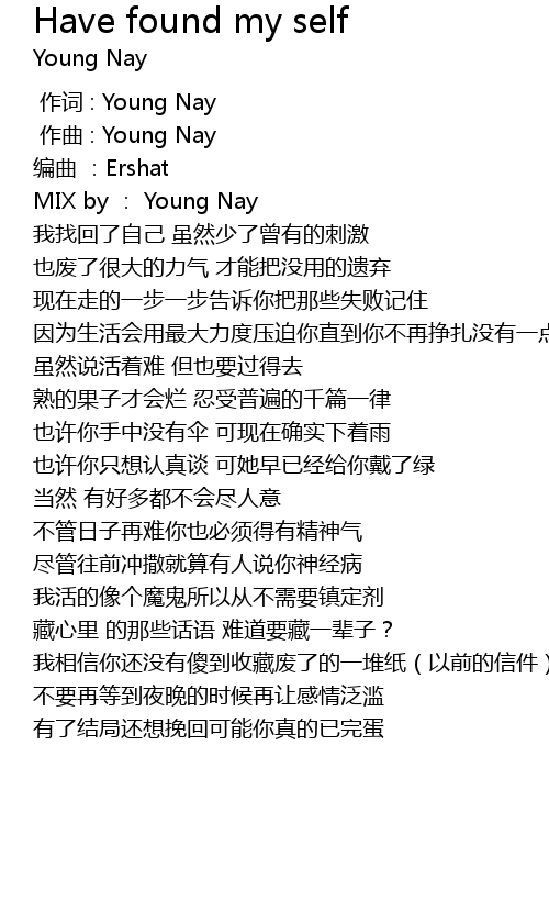 | [00:13.293] | 我找回了自己 虽然少了曾有的刺激 |