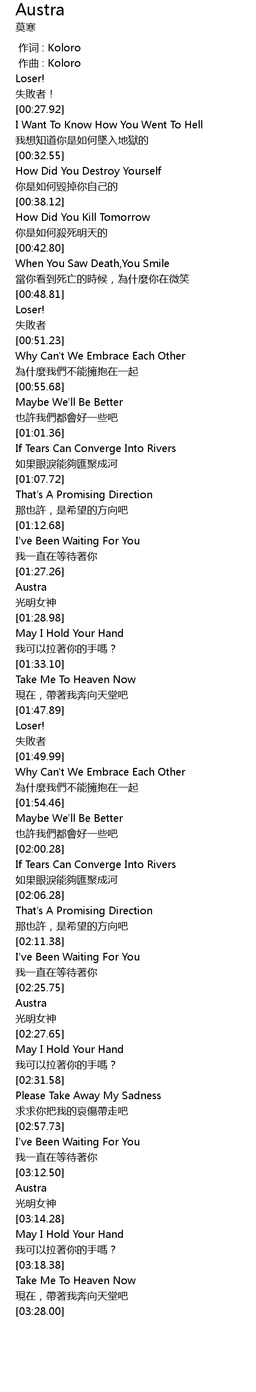 | [00:51.64] | Why Can' t We Embrace Each Other |