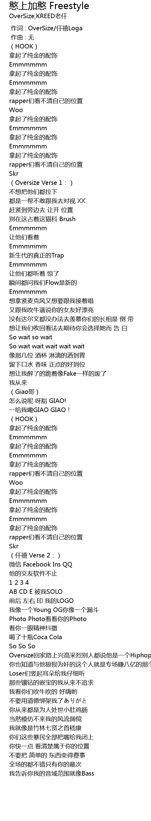 | [00:00.000] | 作词 : OverSize/仟禧Loga |