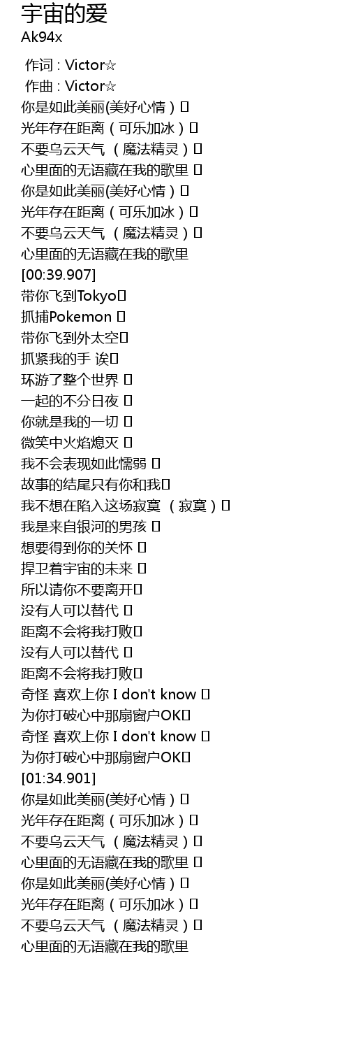 | [01:09.151] | 我是来自银河的男孩 ️ |