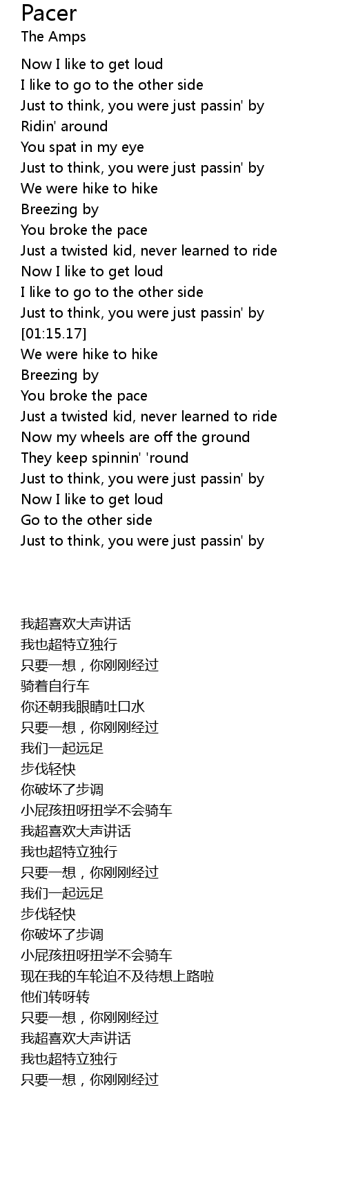 | [00:45.12] | You broke the pace |