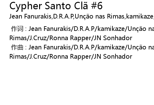 | [00:00.00-1] | 作词 : Jean Fanurakis/D.R.A.P/kamikaze/Unção nas Rimas/J.Cruz/Ronna Rapper/JN Sonhador |