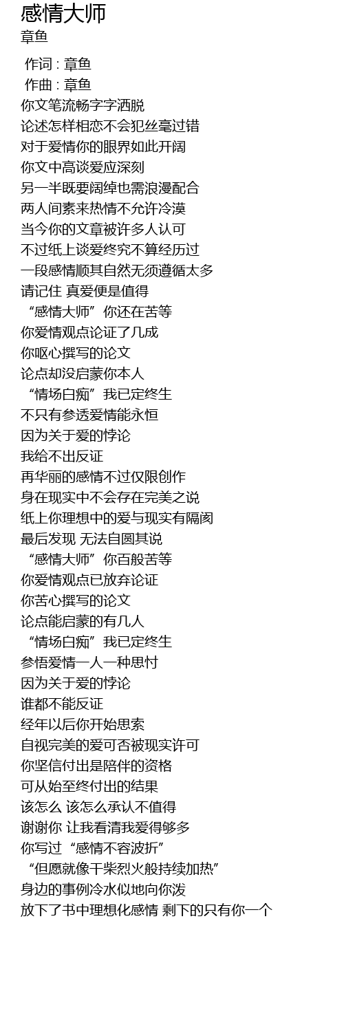 | [00:00.000] | 作词 : 章鱼 |