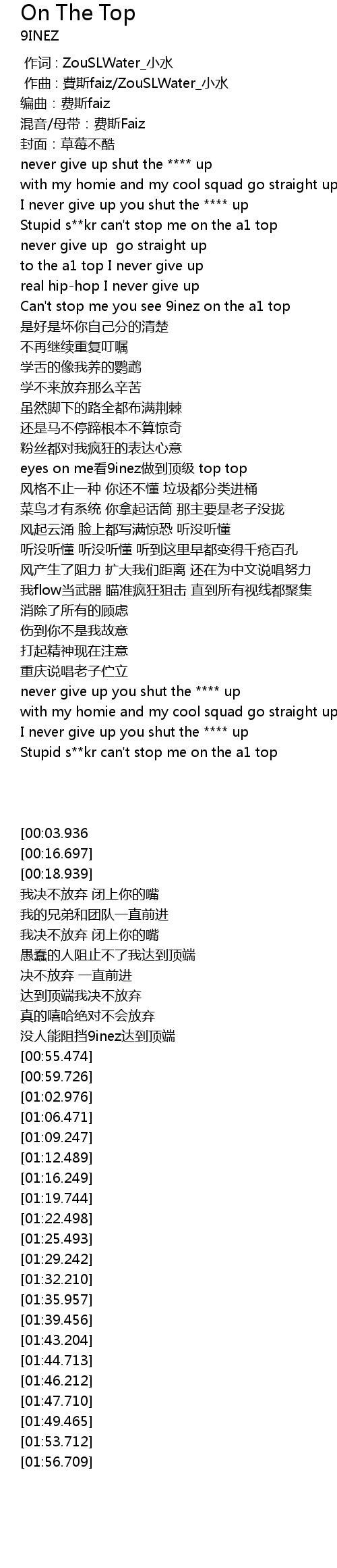 | [01:56.709] | I never give up you shut the up |