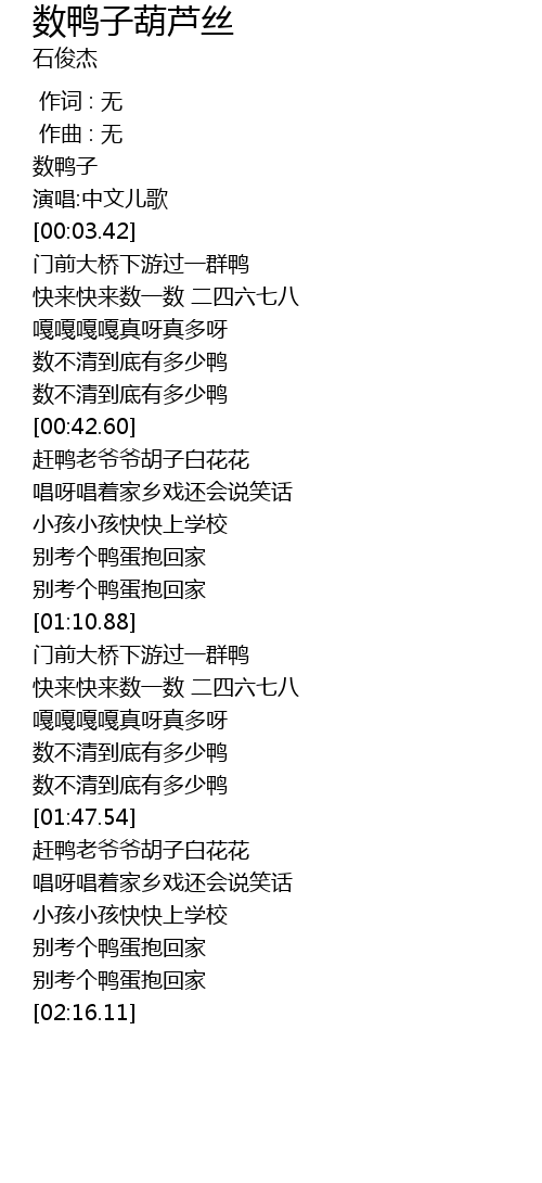 | [01:51.79] | 赶鸭老爷爷胡子白花花 |