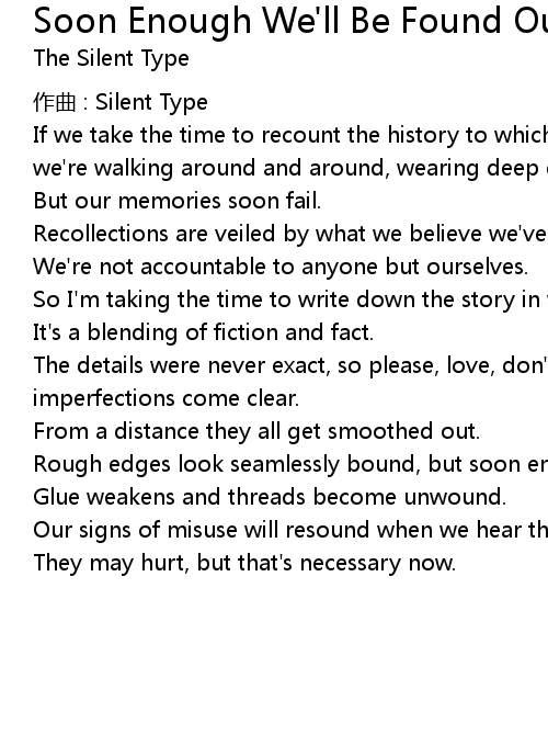 | Rough edges look seamlessly bound, but soon enough we' ll be found out. | |