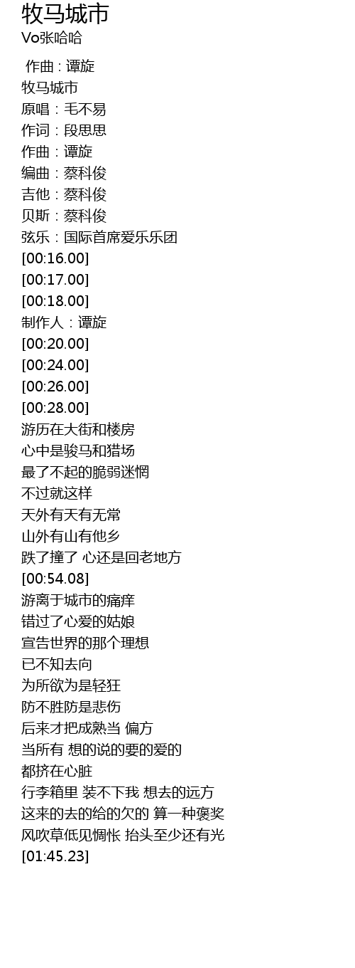 | [01:39.86] | 风吹草低见惆怅 抬头至少还有光 |