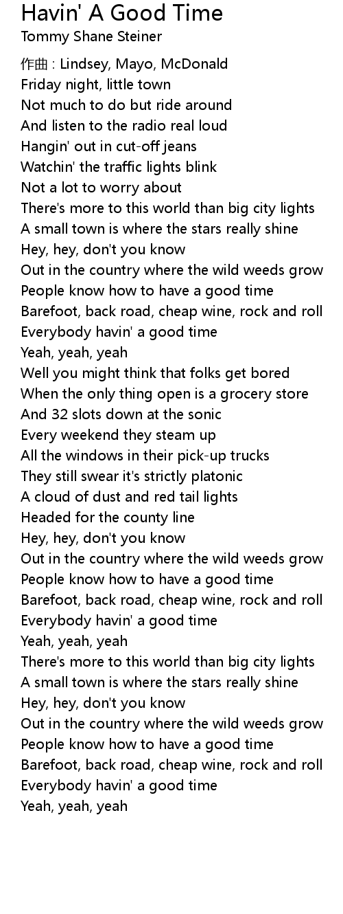 | Song | Havin' A Good Time |