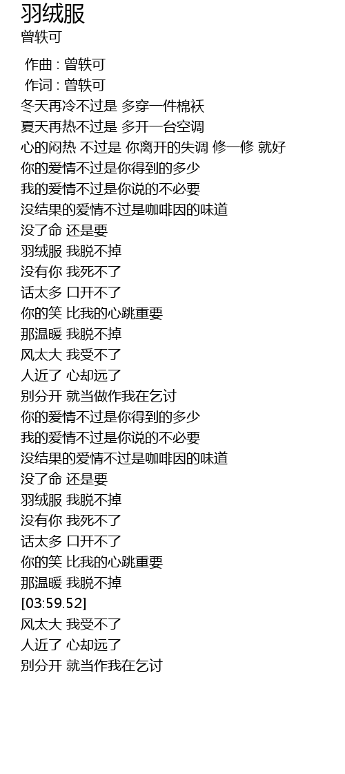 | [03:24.43] | 羽绒服 我脱不掉 |