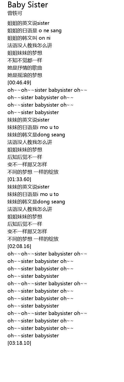 | [00:47.77] | oh~~oh~~sister babysister oh~~ |