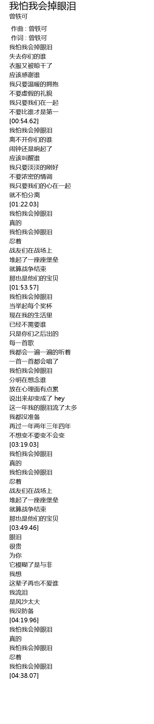 | [04:34.81] | wǒ pà wǒ huì diào yǎn lèi |