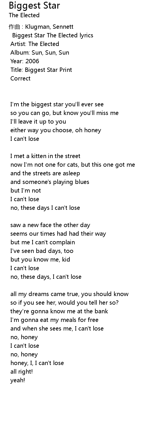 | Biggest Star The Elected lyrics | |
