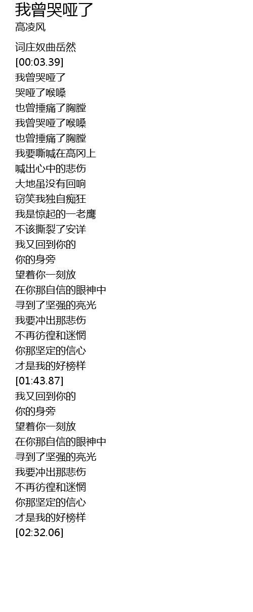 | [00:22.91] | 我曾哭哑了喉嗓 |