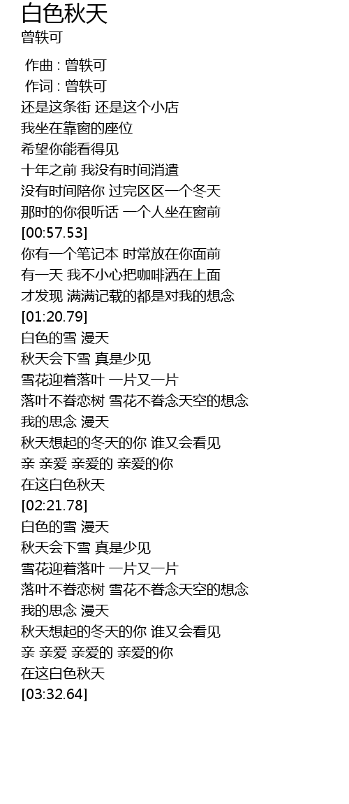 | [03:26.30] | 在这白色秋天 |