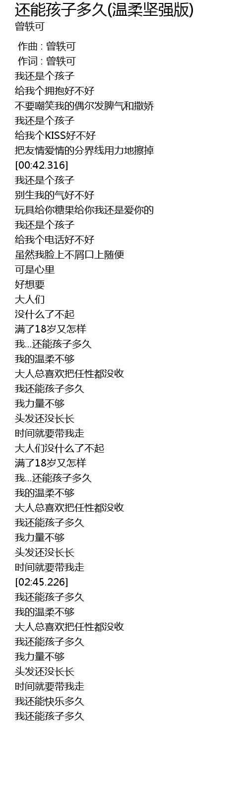 | [00:42.607] | wǒ hái shì gè hái zi |