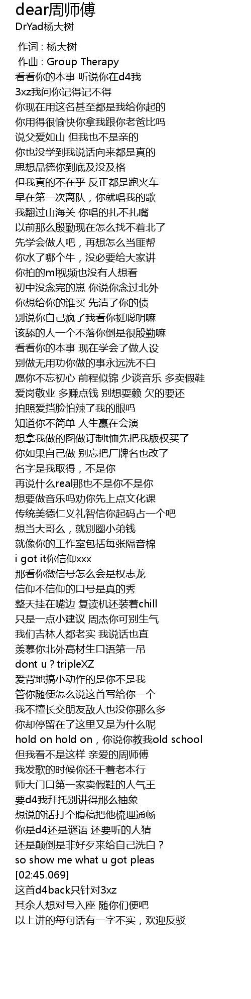 | [02:36.319] | 你是d4还是谜语 还要听的人猜 |