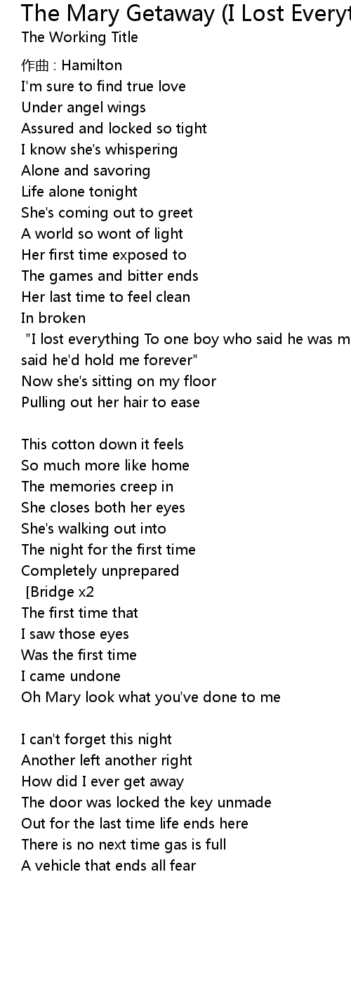| English she says Chorus " I lost everything To one boy who said he was mine He said he' d hold me forever" | |