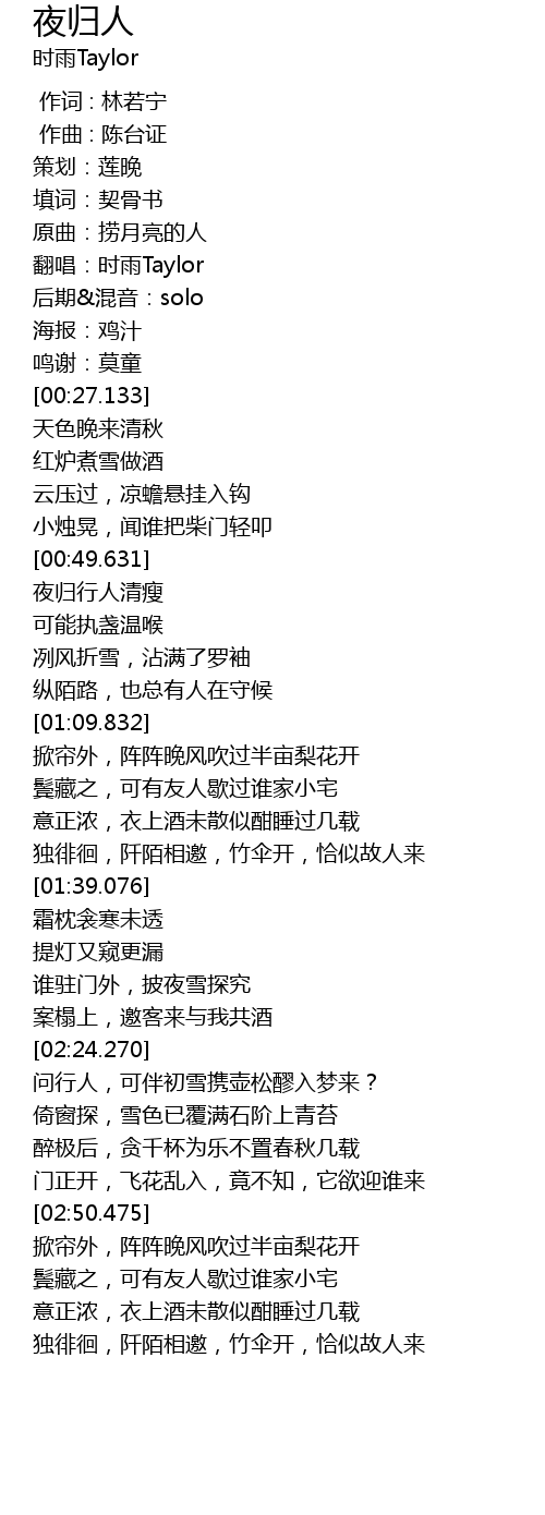| [00:50.581] | yè guī xíng rén qīng shòu |