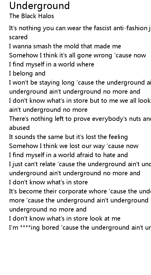 I won't be staying long 'cause the underground ain't underground no more no the underground ain't underground no more and |