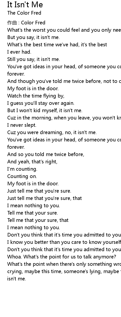 | What' s the point when there' s only something wrong, maybe this time, if you' re crying, maybe this time, someone' s lying, maybe this time, maybe this time, it isn' t me. |