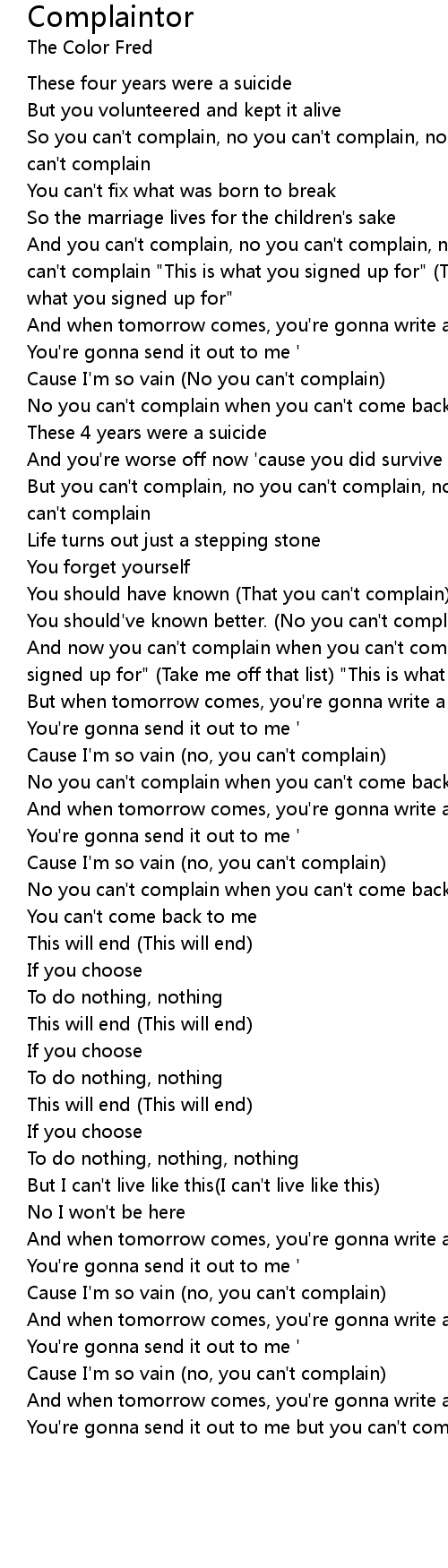So you can't complain, no you can't complain, no you can't complain, no you can't complain |