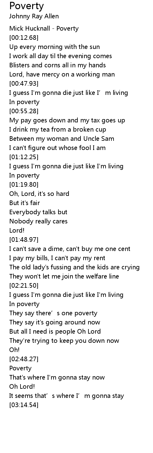 | [02:09.53] | I pay my bills, I can't pay my rent |