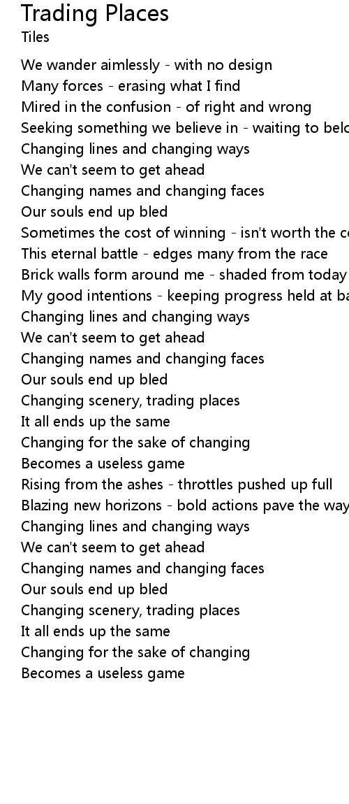 | Changing scenery, trading places | |