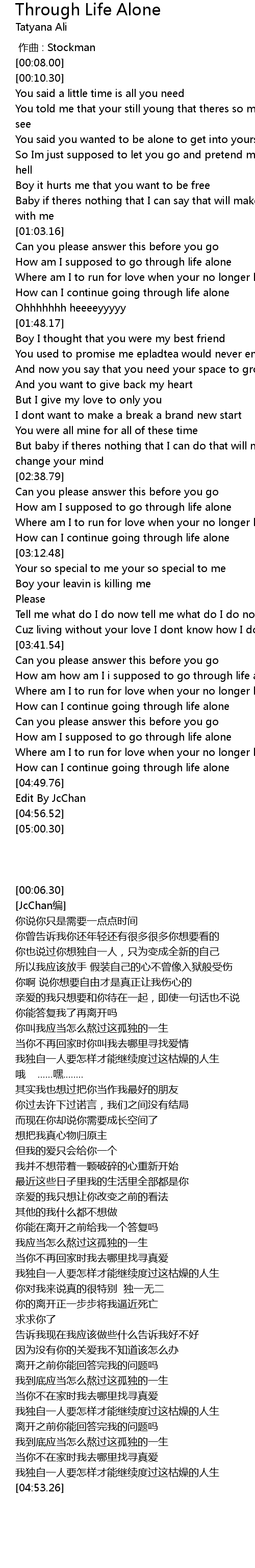 | [03:51.18] | How am how am I i supposed to go through life alone |