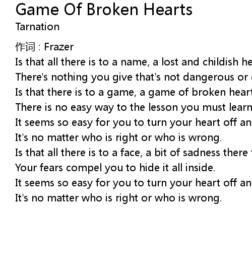 | Is that there is to a game, a game of broken hearts. | |