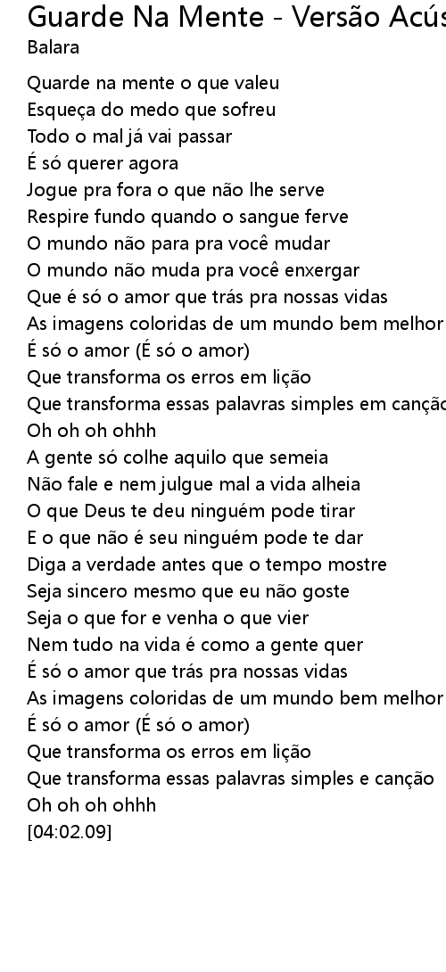 | [02:54.56] | É so o amor que tra s pra nossas vidas |