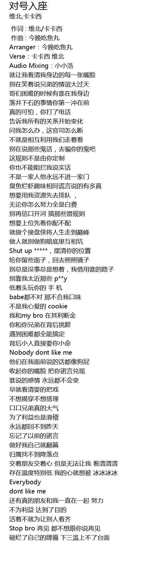 | [01:05.837] | Shut up *****,摆清你的位置 |