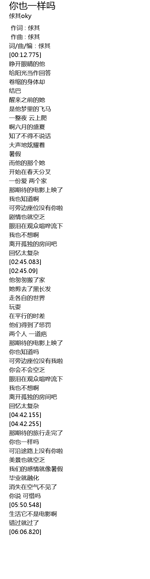 | [02:09.992] | ke pang bian zuo wei mei you ni la |