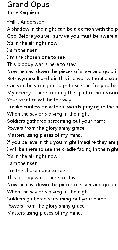 | Song | Grand Opus |