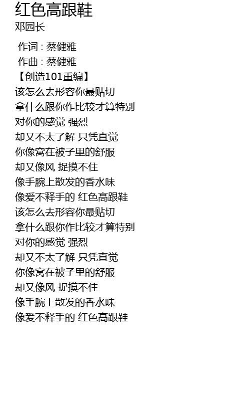 | [01:53.388] | 像爱不释手的 红色高跟鞋 |