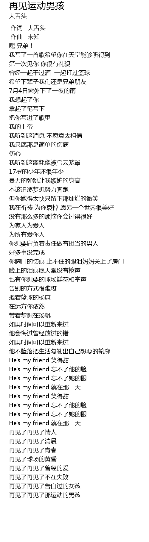 | [01:41.989] | He' s my friend. wàng bù liǎo tā de liǎn |