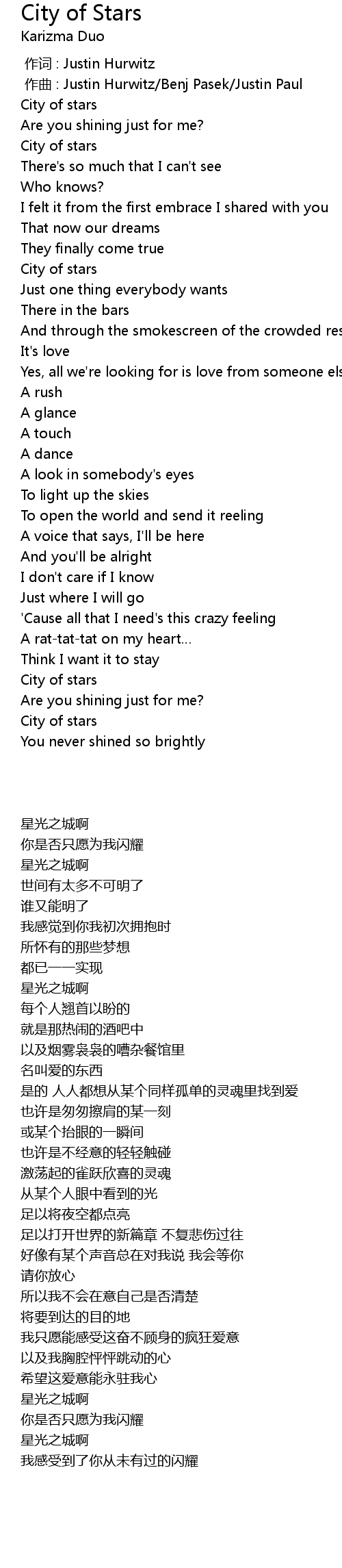| [00:00.000] | 作词 : Justin Hurwitz |