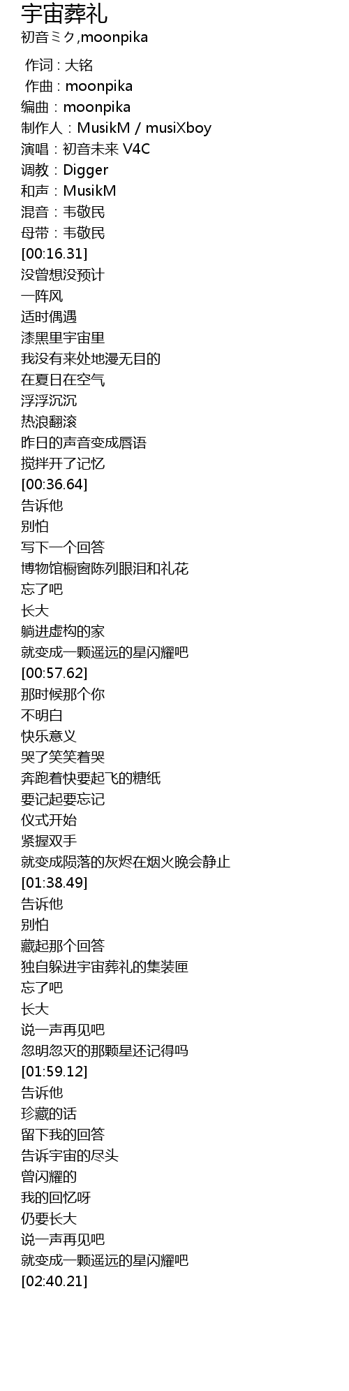 | [01:43.84] | 独自躲进宇宙葬礼的集装匣 |