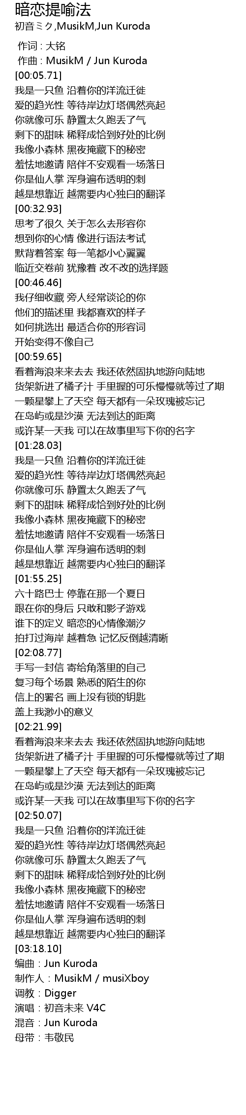| [03:42.10] | 制作人:MusikM / musiXboy |