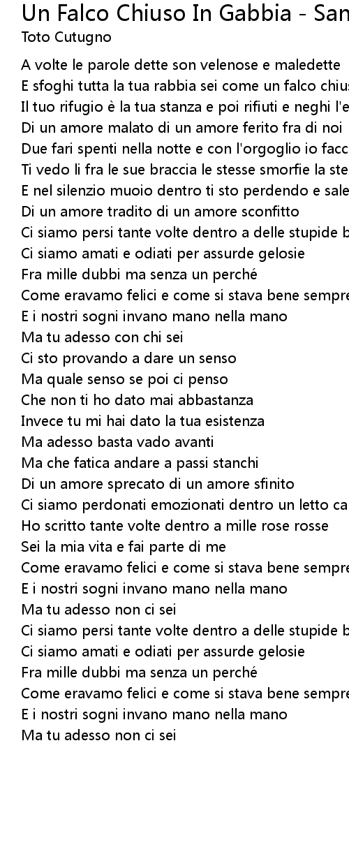 | E sfoghi tutta la tua rabbia sei come un falco chiuso in gabbia | |